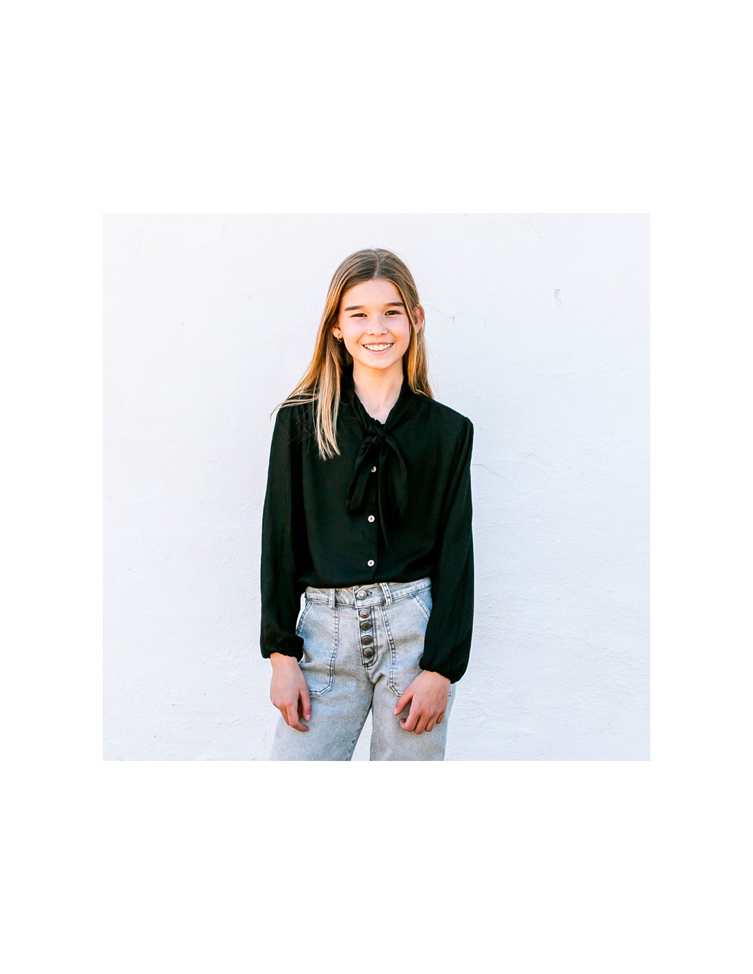 BLUSA LAZO VISCOSA NEGRA NIÑA/TEEN
