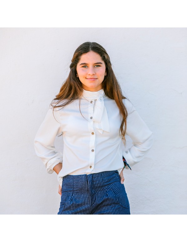 Ideal para llevar con falda de capa y evocar un aire elegante y femenino, o para contrastar con una blazer tartán y darle un toque moderno y actual. Una de esas blusas que se convierten en fondo de armario por su sencillez y su capacidad de transformar cualquier look.