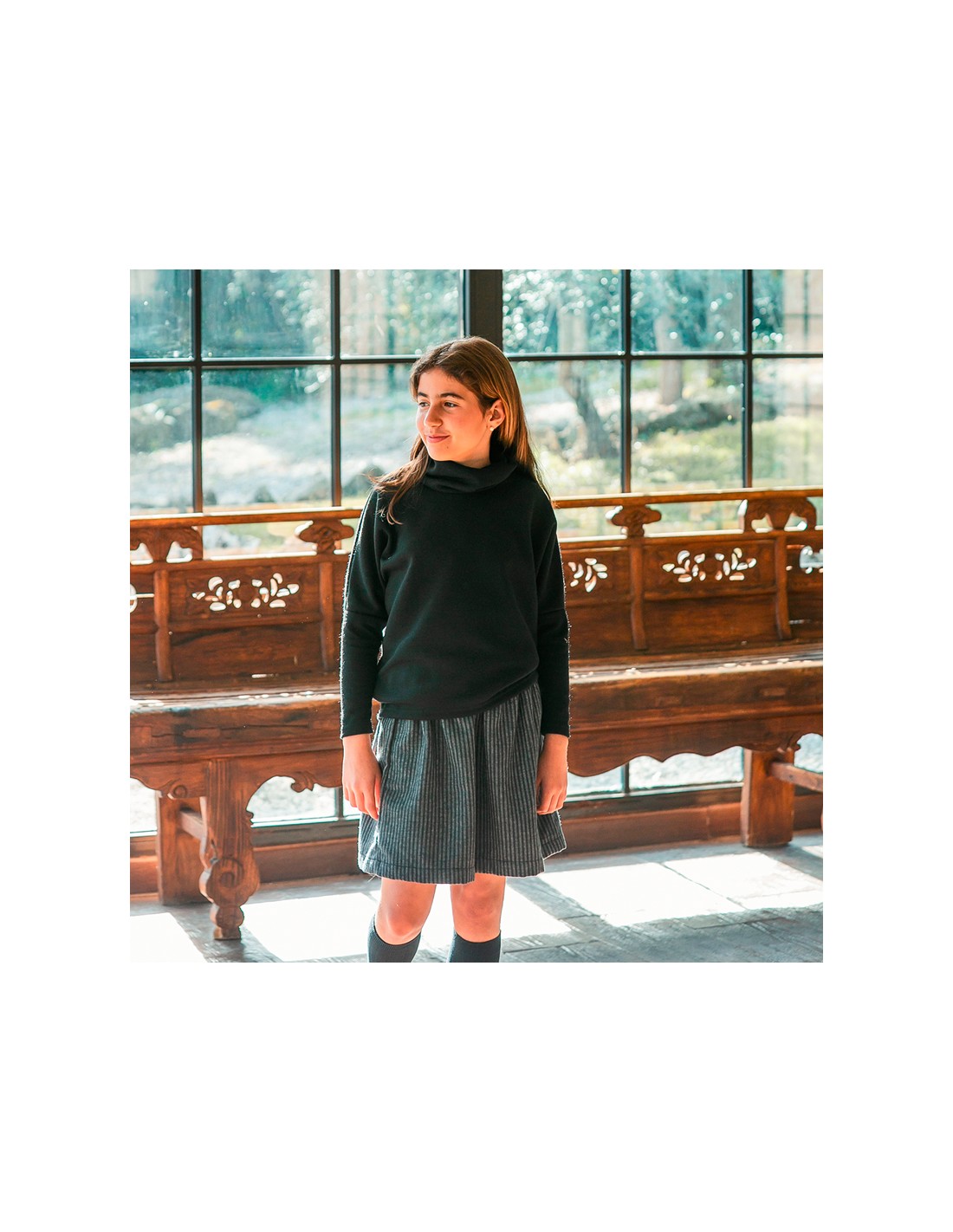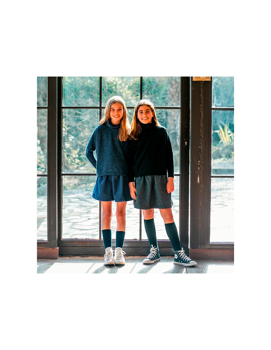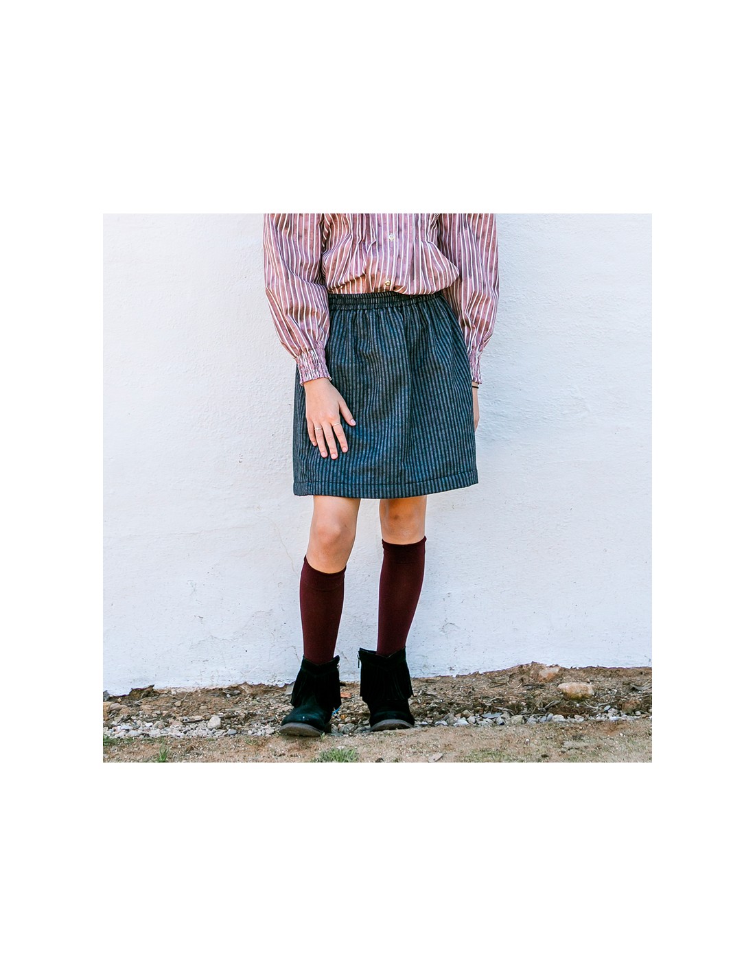 Una falda diseñada pensando en las más pequeñas: elegante, cómoda y con un diseño que nunca pasa de moda. El corte engomado en la cintura asegura ajuste perfecto y libertad de movimiento, mientras que las rayas diplomáticas aportan un aire clásico y sofisticado.