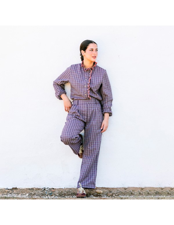 El compañero ideal de nuestra blusa de cuadros: este pantalón combina comodidad y estilo. Su cinturilla elástica asegura un ajuste perfecto y máxima comodidad durante todo el día, mientras que las pinzas delanteras aportan estructura y un aire elegante, muy alineado con nuestro estilo Dímelo Hilando.