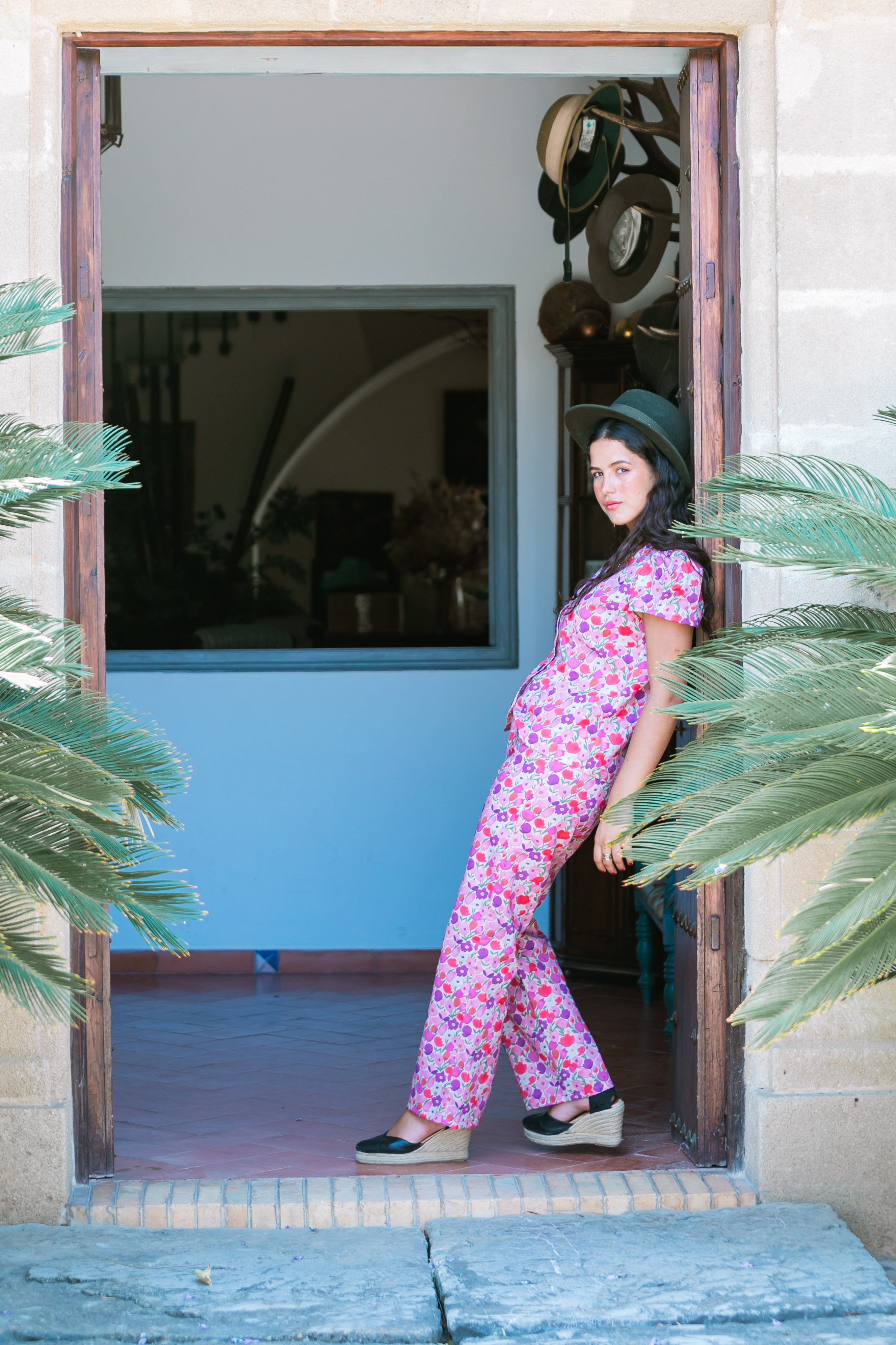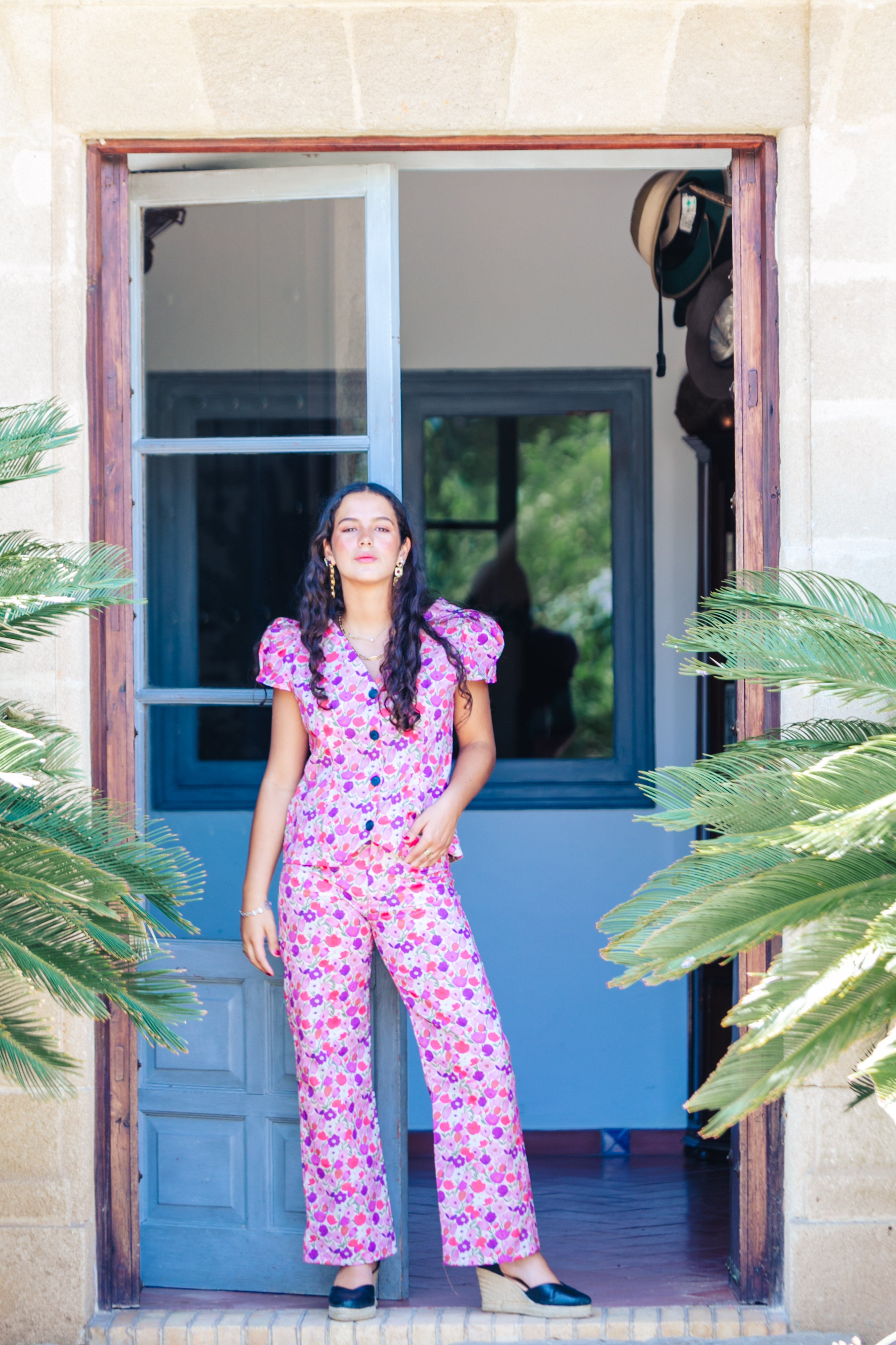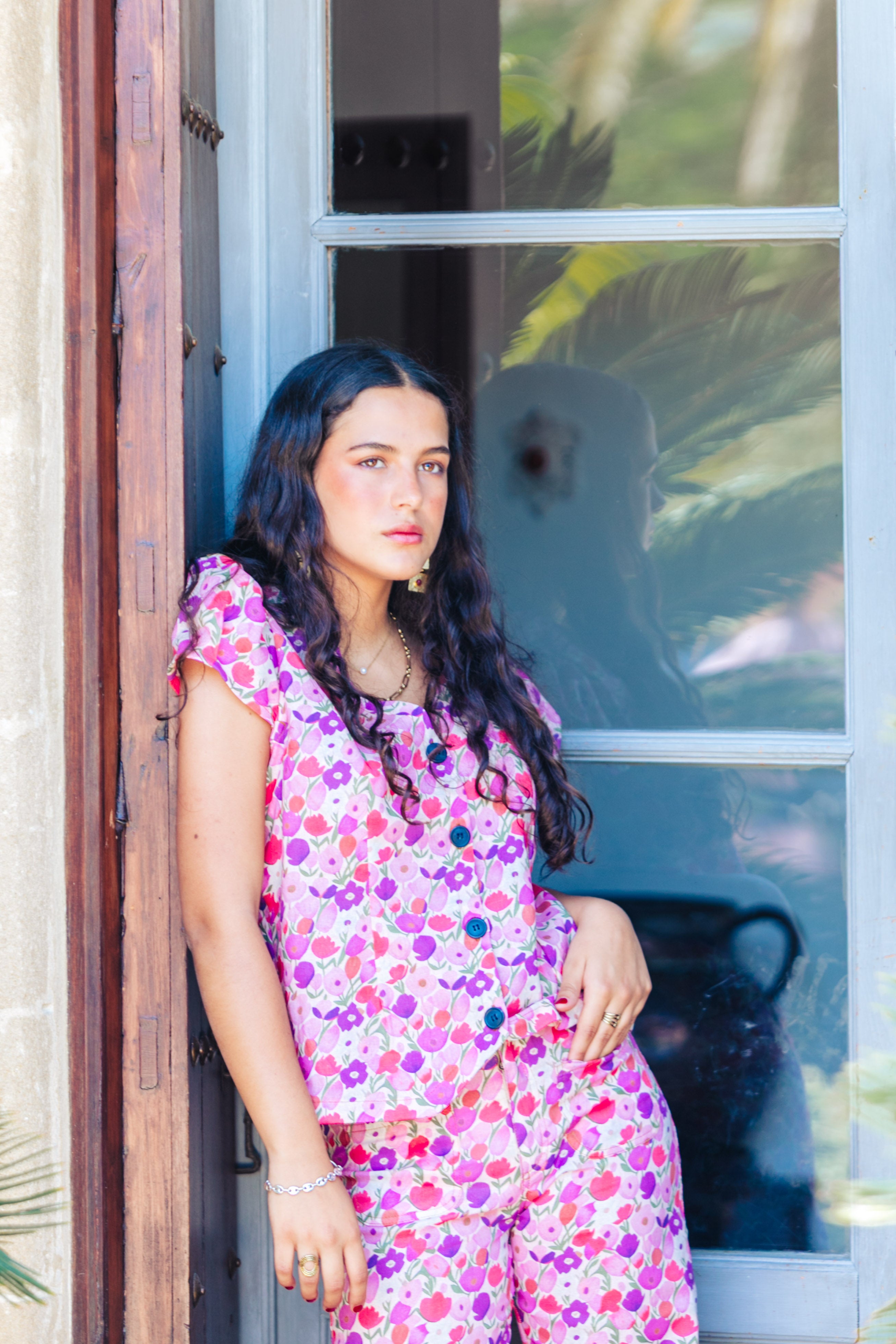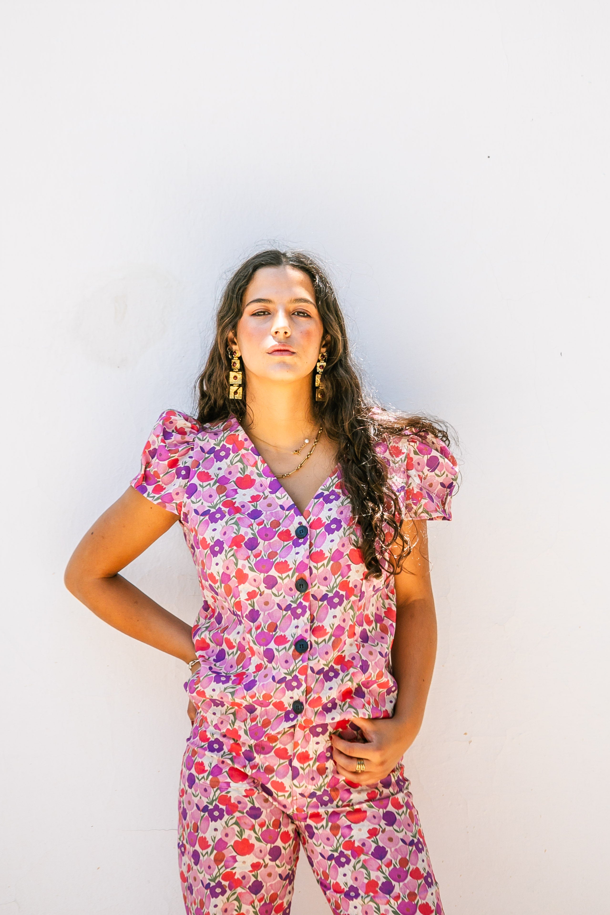 BLUSA TULIPANES LINO MORADA