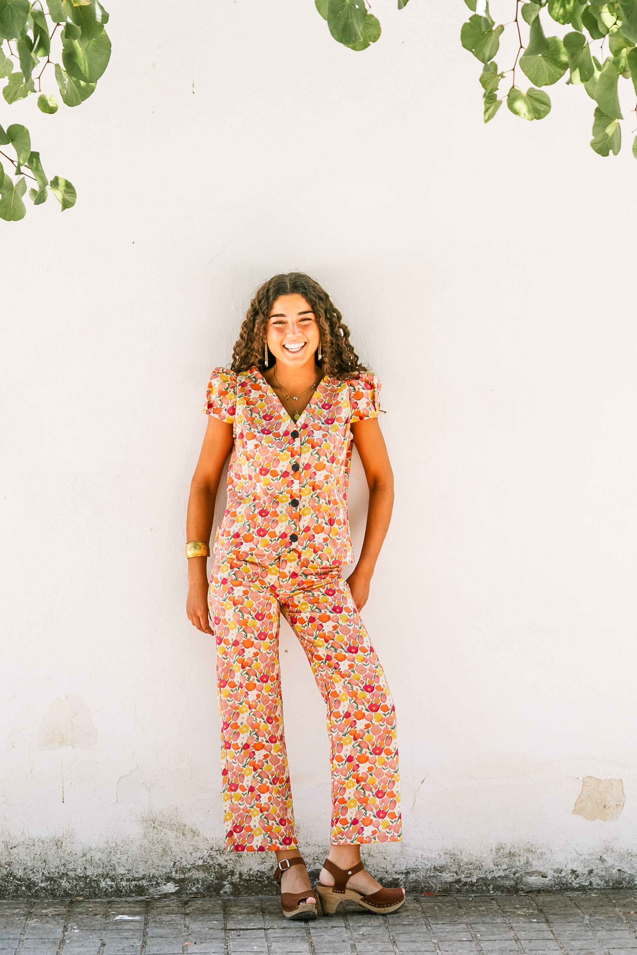 BLUSA TULIPANES LINO NARANJA
