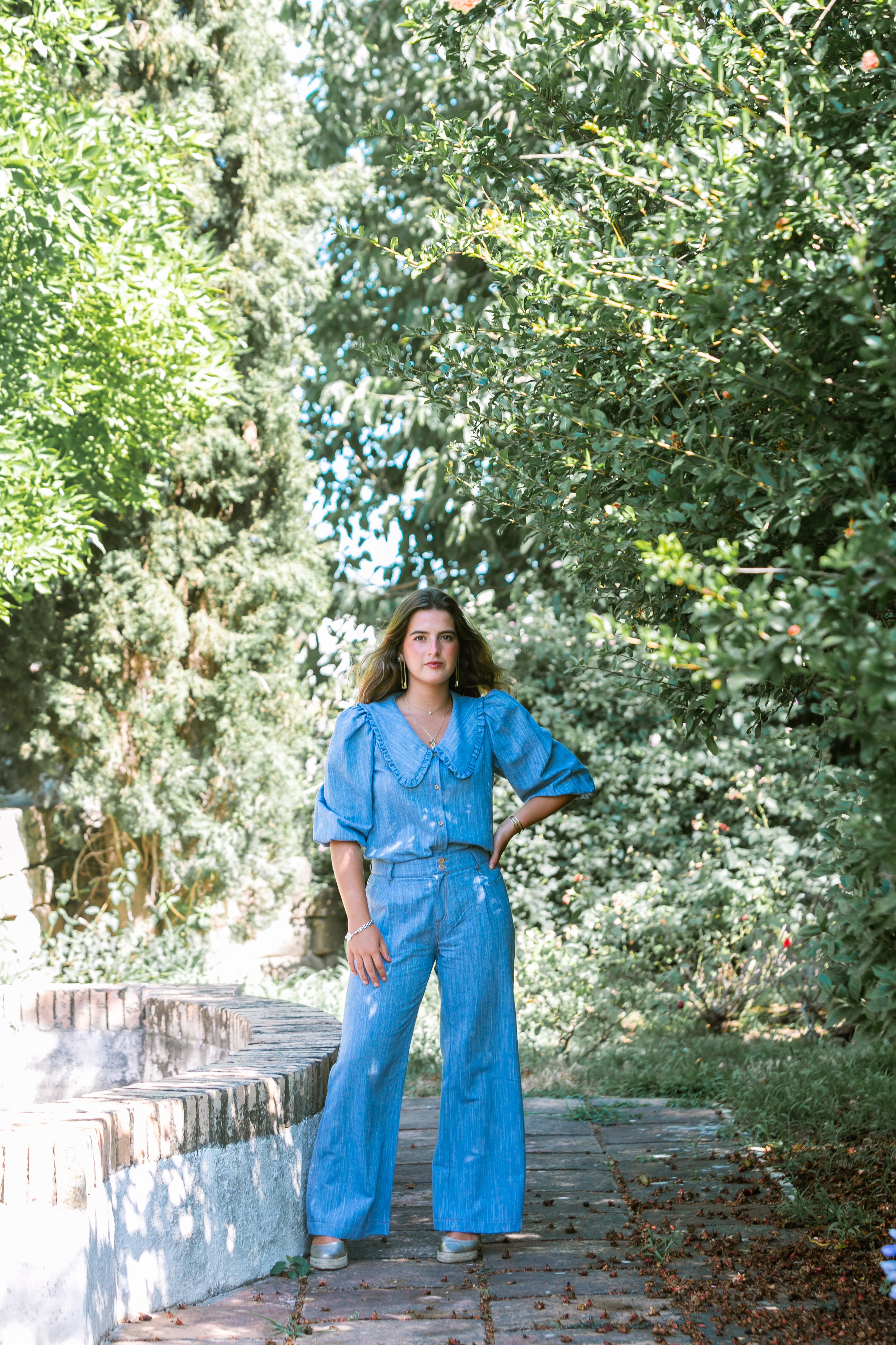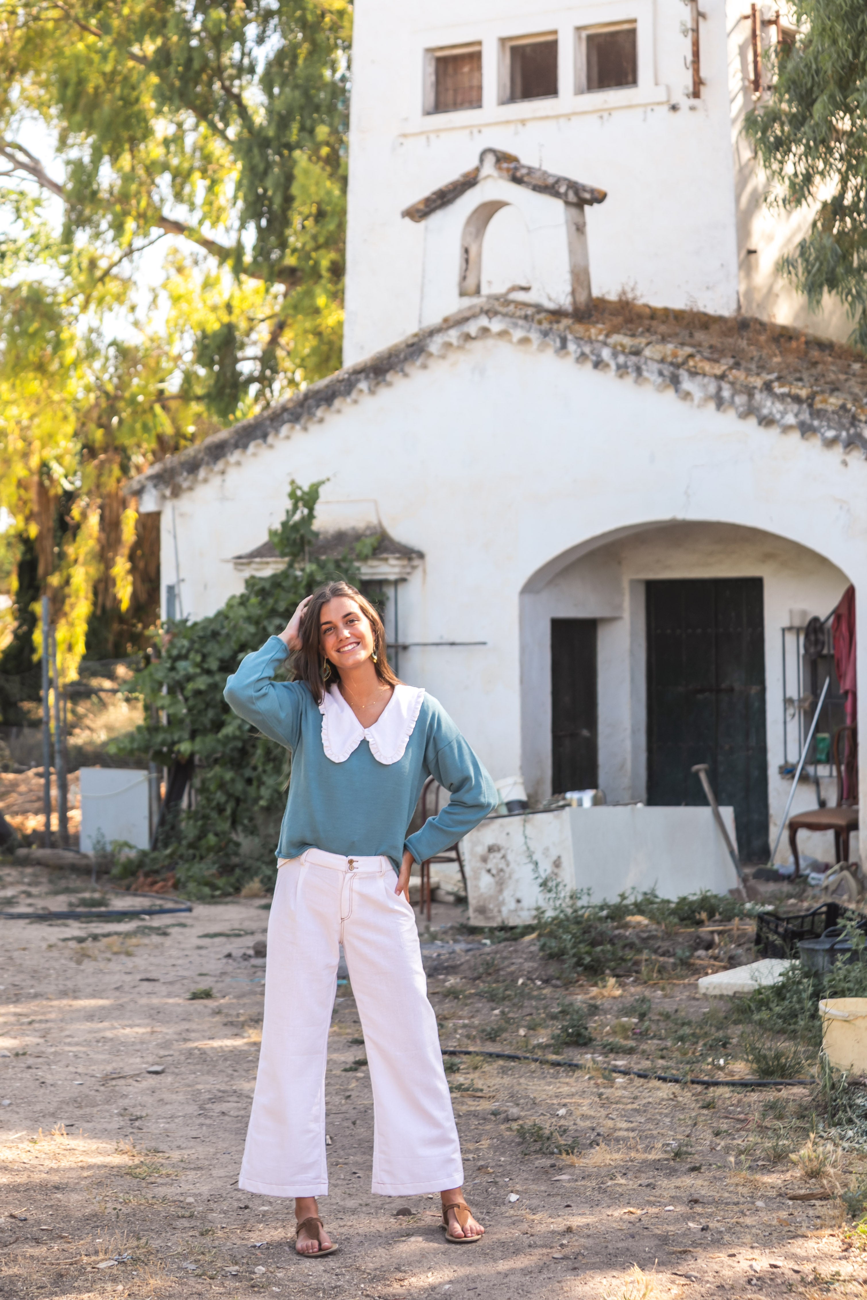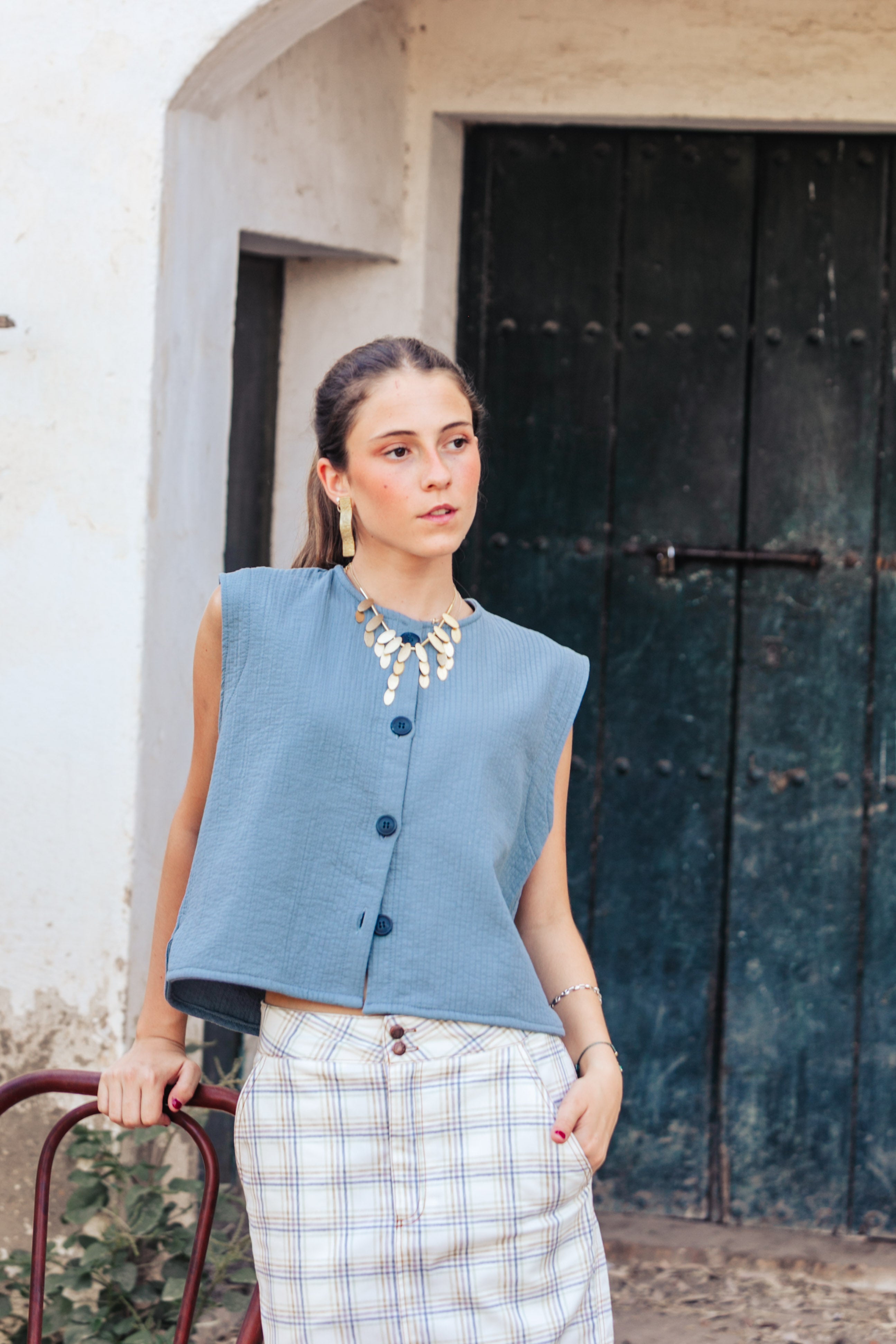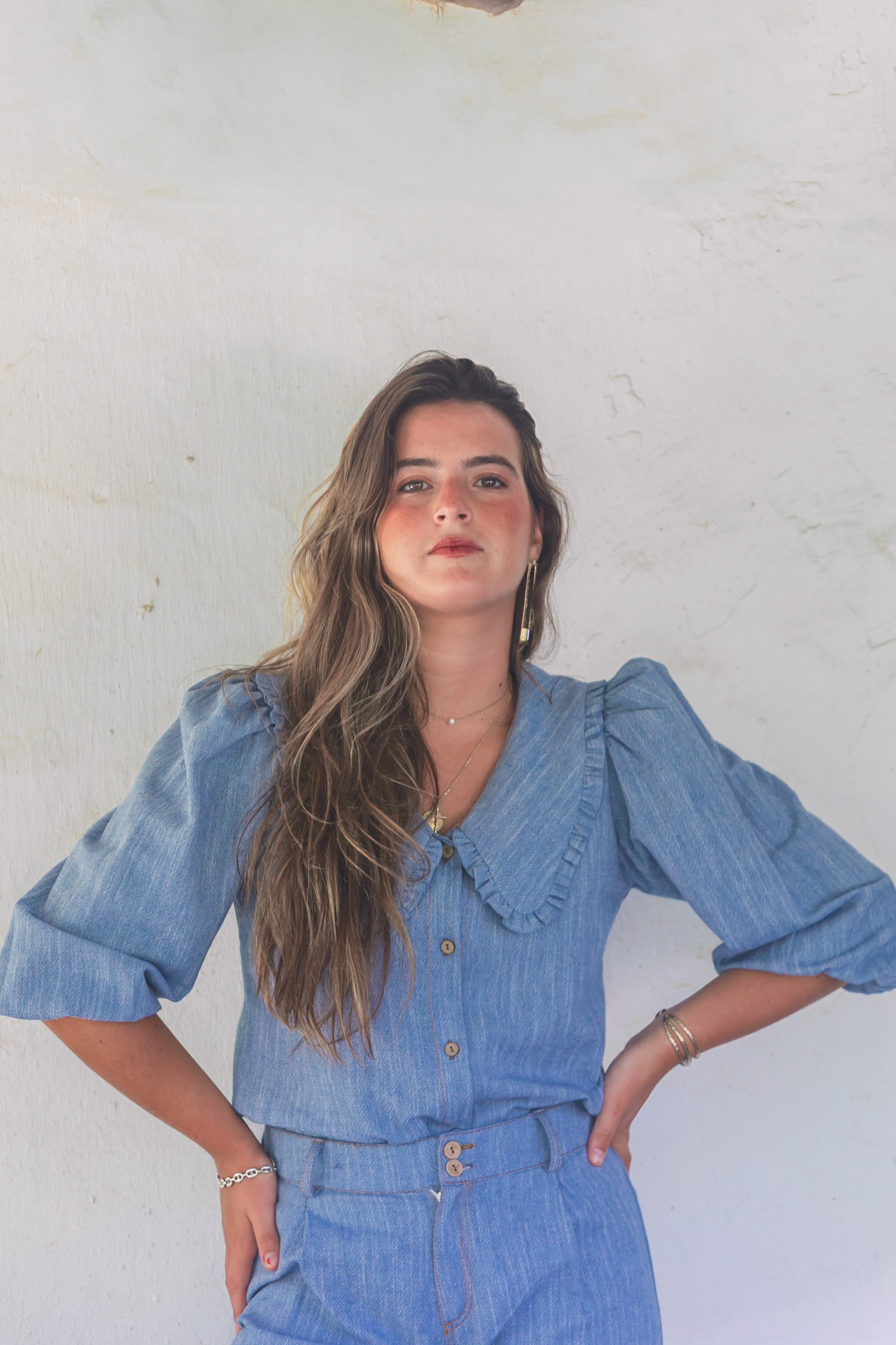 BLUSA PICO LINO VAQUERA AZUL