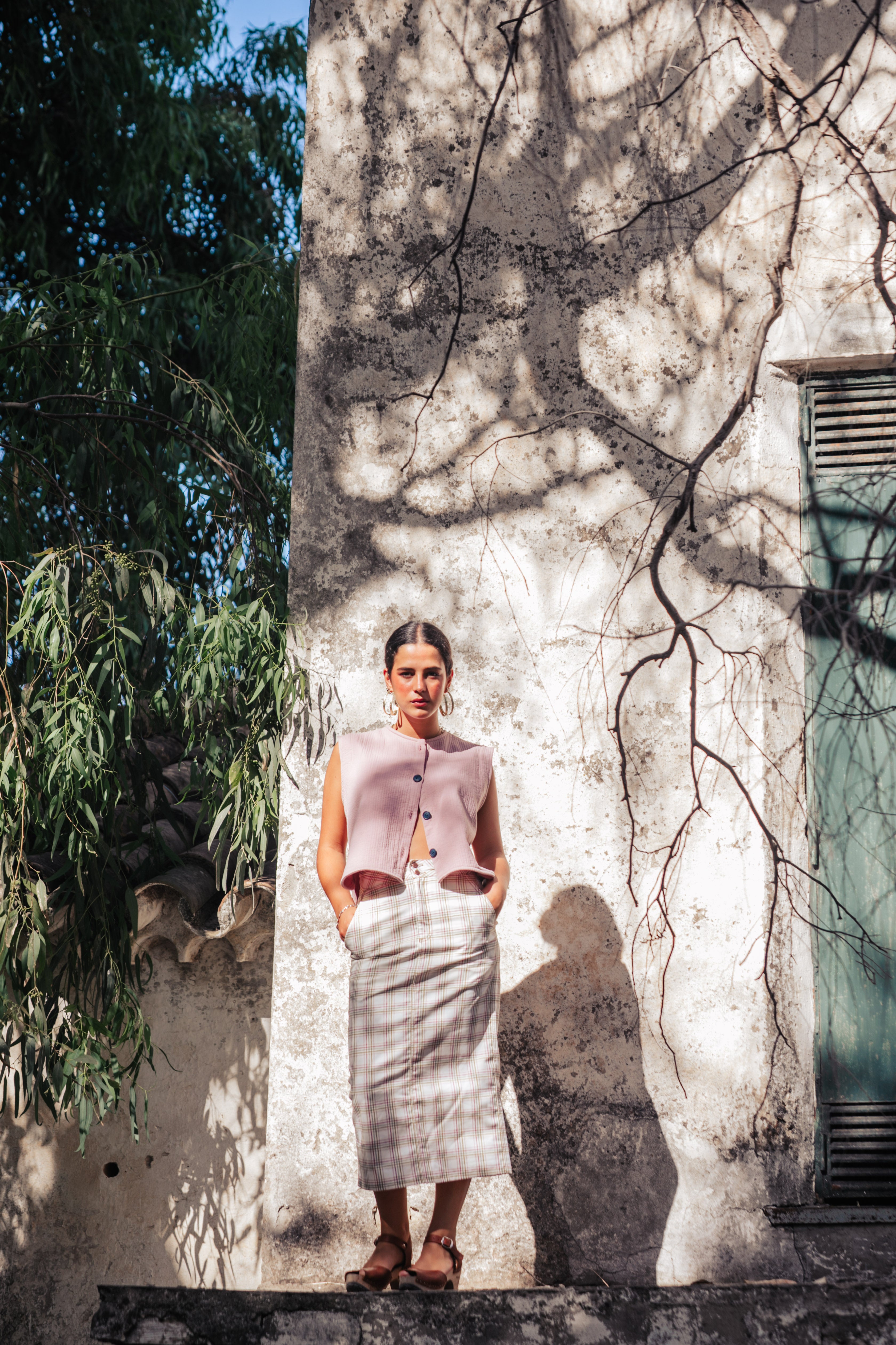FALDA CUADROS ROSA EMPOLVADO