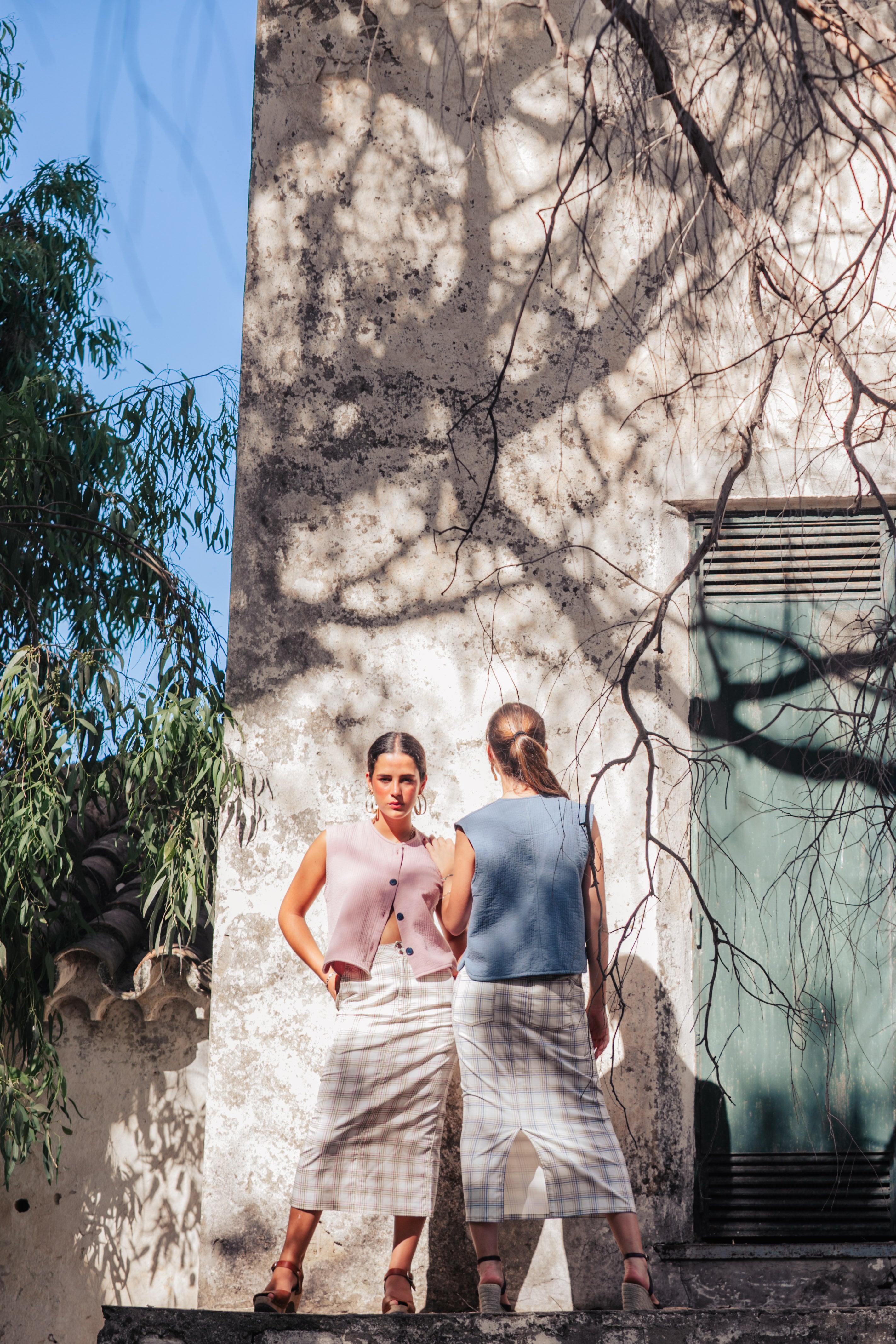 FALDA CUADROS AZUL EMPOLVADO