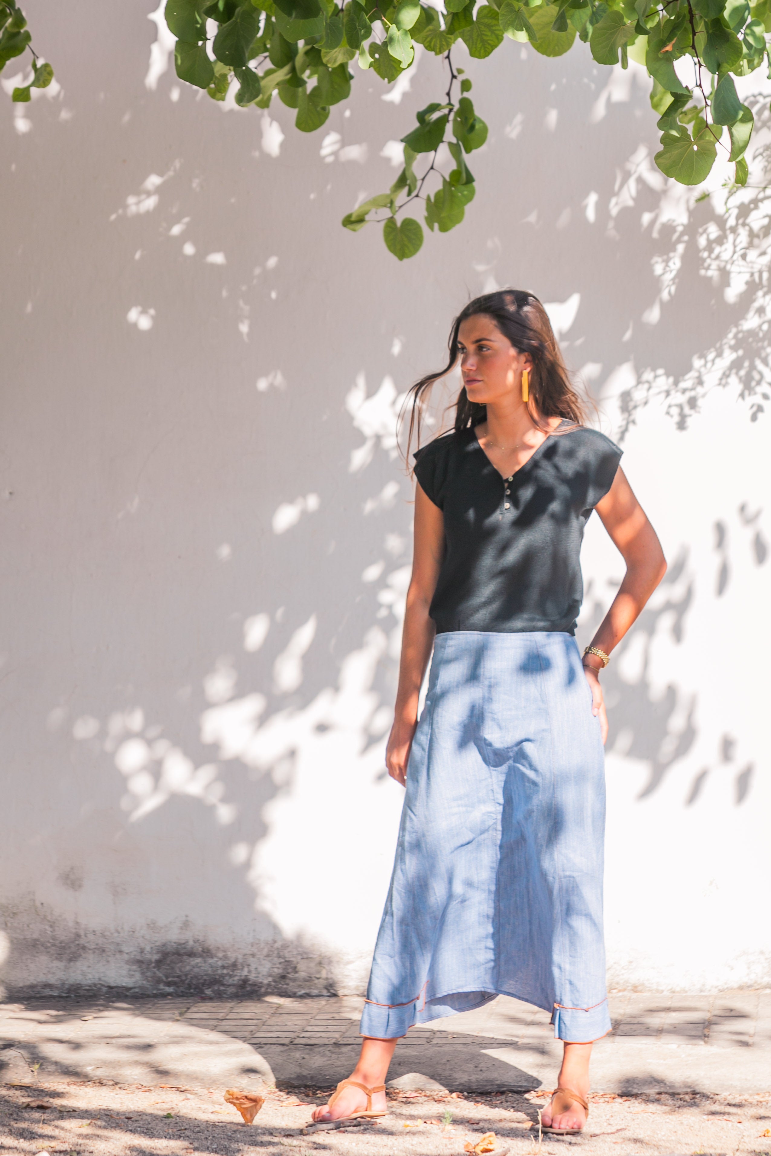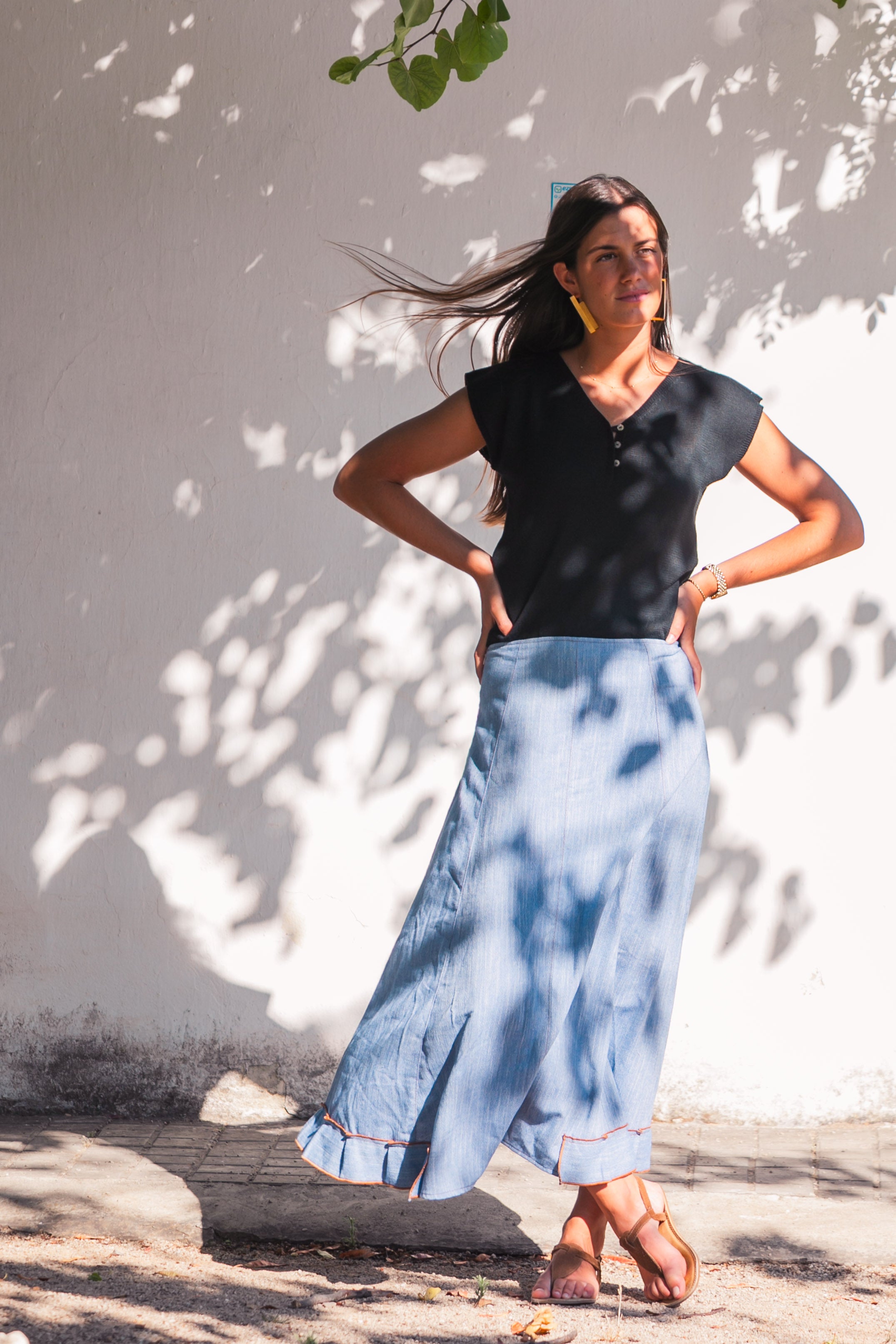 FALDA LINO VAQUERA AZUL