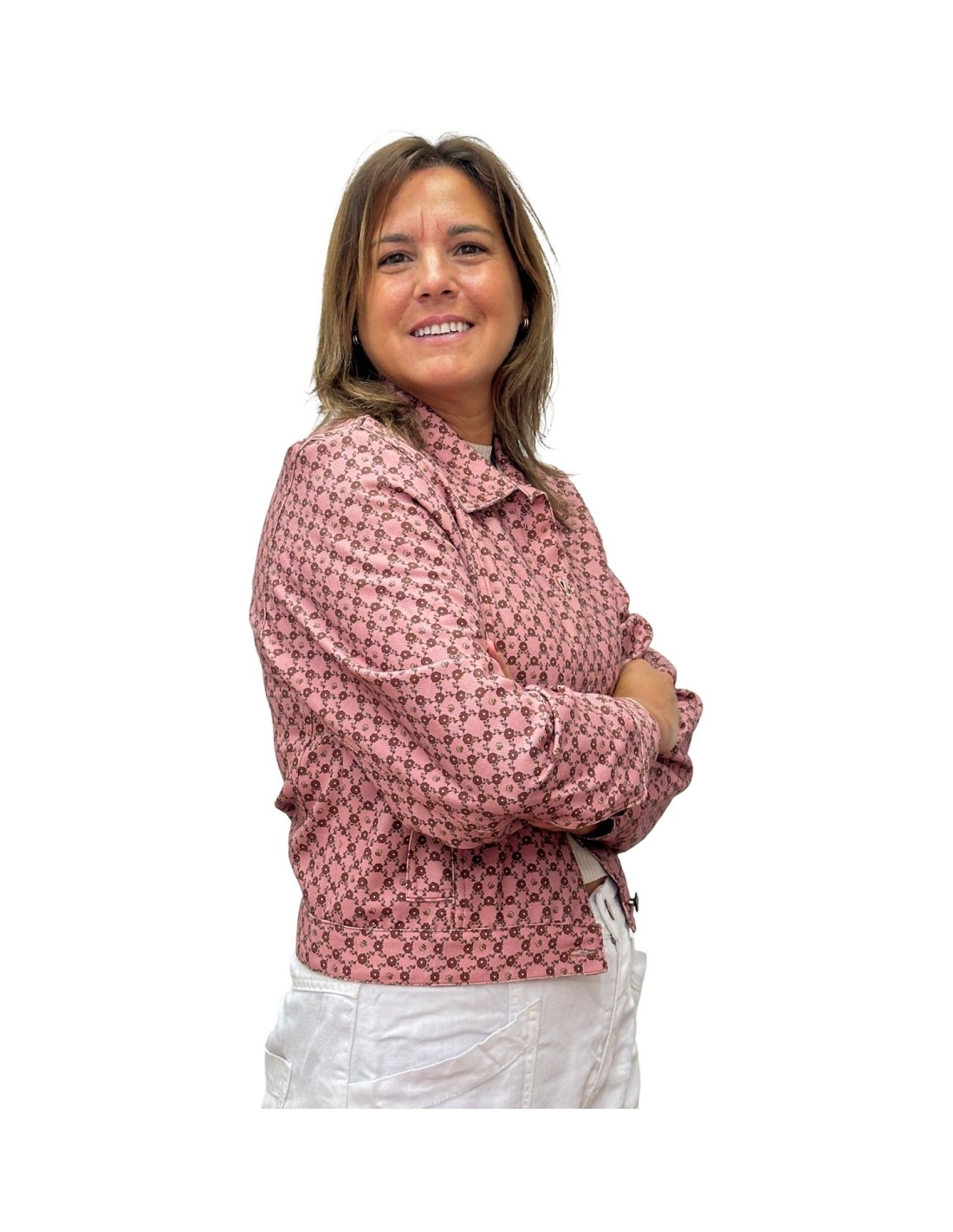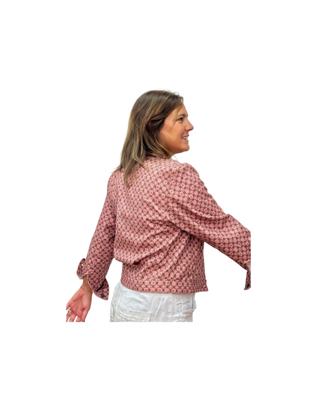 Nuestra Chaqueta Geo en color rosa, disponible en diferentes tallas. Descubre nuestra colección Otoño Invierno 2024/2025 en Dímelo Hilando.
